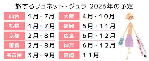 ・1ヶ⽉前までに告知情報をいただけましたら、リュネット・ジュラの WEB サイト、SNS 等で催事の案内をいたします。終了後はアーカイブに掲載いたします。